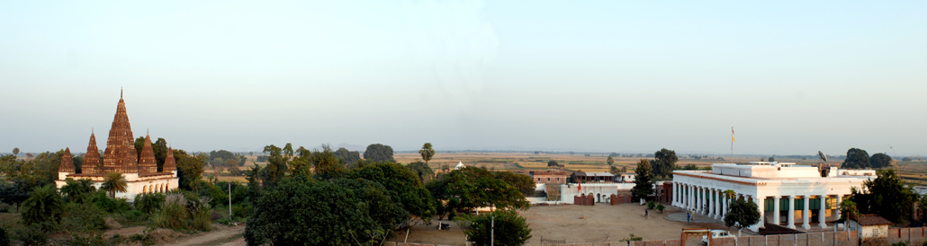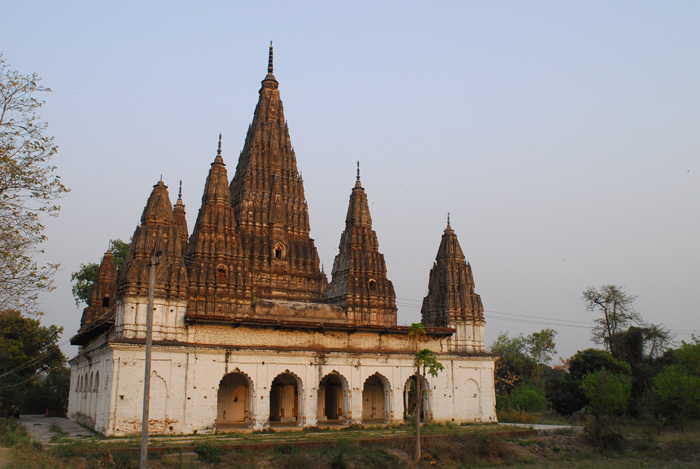 On the grounds around stand the nine-spired Nauratan Mandir, dedicated to Radha-Krishna and eight other deities as well as the smaller Hanuman Mandir and Surya Mandir. |
